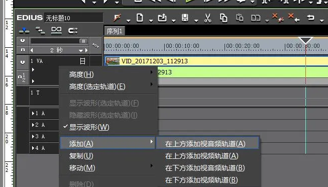 1、首先我们导入视频素材,接着在第一个音轨上添加额外的一个音视频轨道。