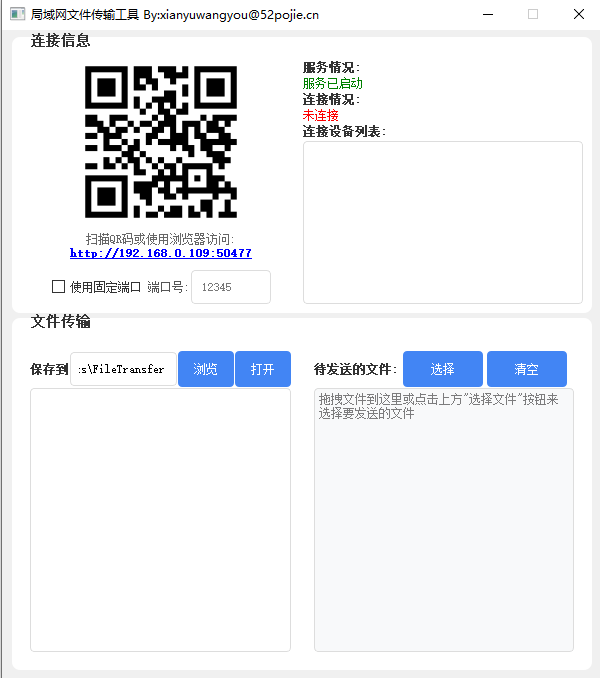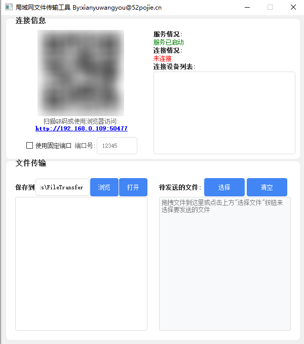 2、该软件支持通过浏览器界面进行操作,您只需在电脑上输入手机应用显示的IP地址和端口号,即可开始发送或接收大文件。