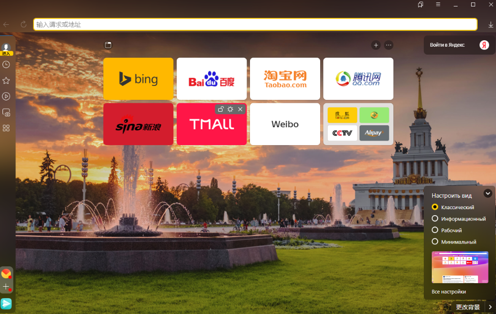 Yandex浏览器中文是一款十分知名的浏览器软件,该软件内含海量的工具,从插件扩展再到密码填充和广告屏蔽等一系列的功能都应有尽有。并且软件的自由度非常高,用户能自定义界面主题和背景,打造属于自己的软件。