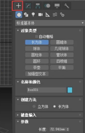 1、打开软件,在视口右侧选择创建,选择需要穿件的标准基本体。