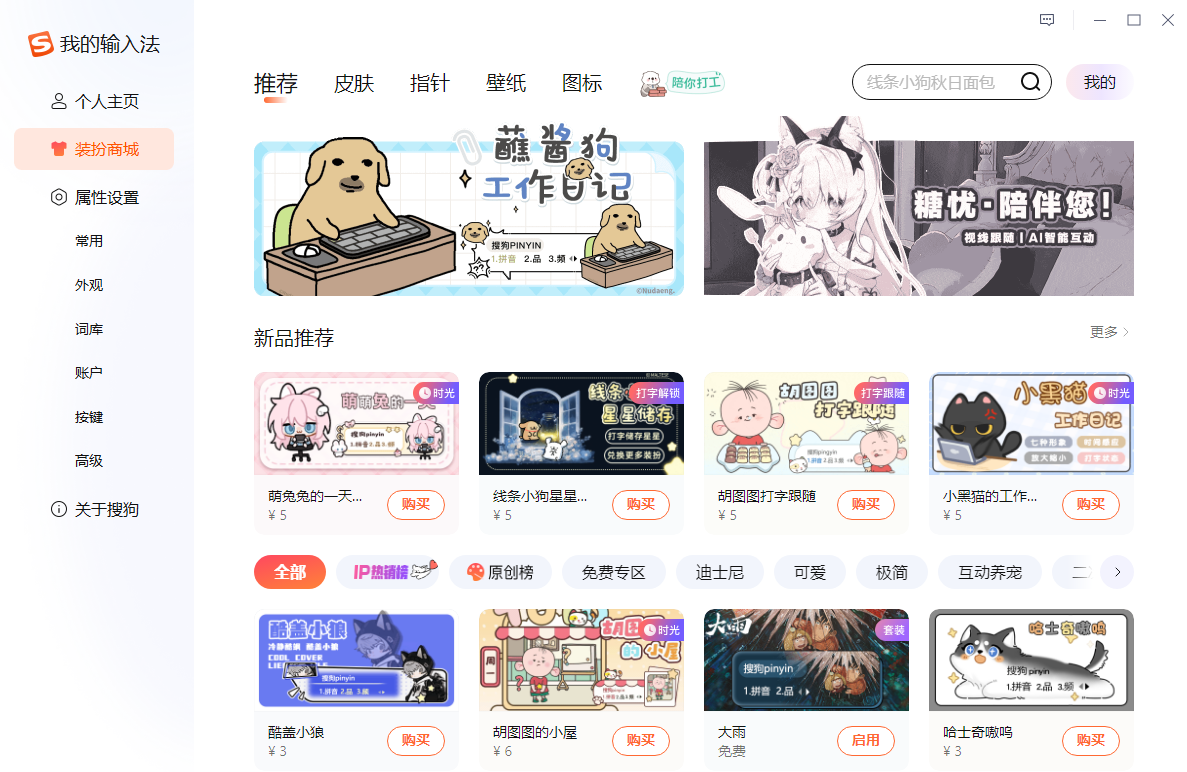 内置了海量的精美皮肤可以选择,在其中能够为自己的输入法更换各种好看的皮肤就可以了。