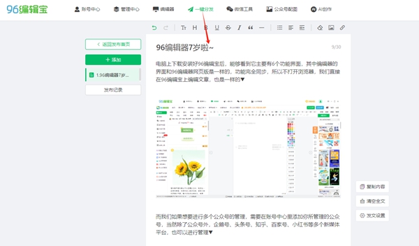 1、进入96微信编辑器官网2025最新版软件之后点击进行图文文案的编辑。