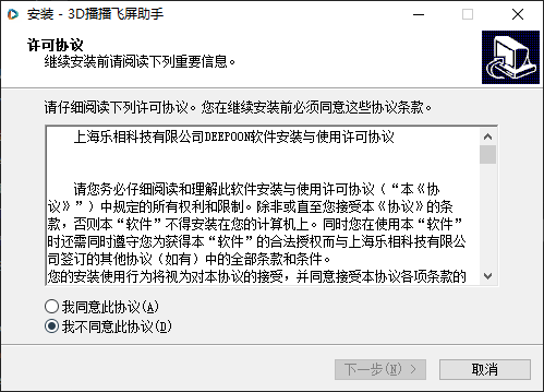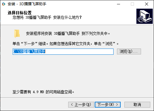 1、在本站下载3D播播飞屏幕助手,打开安装程序。
