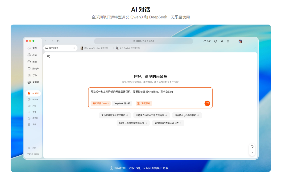 淘宝mac版是一个万能购物应用,需要注意的是它不是平时大家用的网页版,而是一个单独的桌面应用,购物体验跟以往大不同,强烈推荐大家下载试试,内置了超强的AI大模型,它是大家的得力采购助手,让采购比价不再是一件辛苦事。