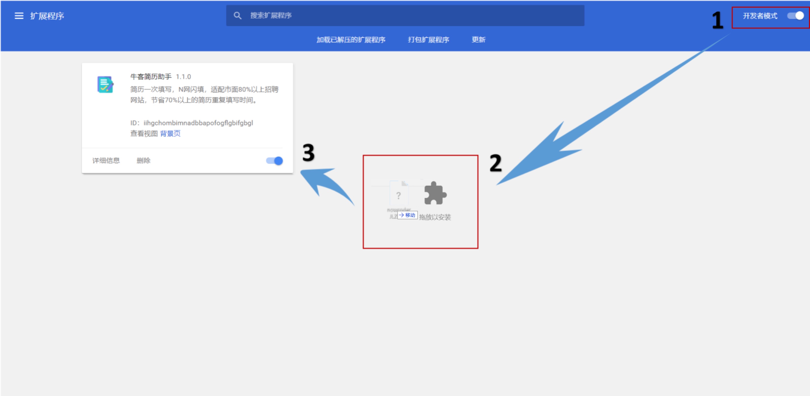 2、打开右上角的开发者模式。