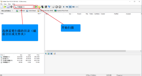 1、已管理员身份打开软件,选择需要扫描的目录,随后进行扫描。
