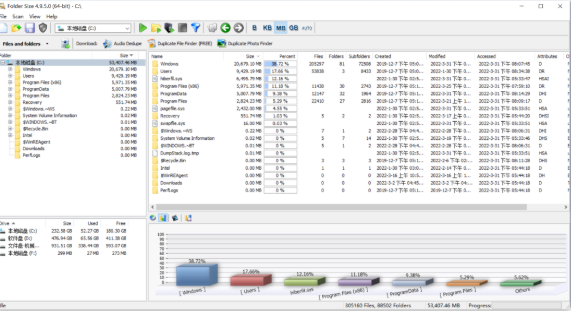 2、扫描完成后,就可以看到所有文件和文件夹的大小,以及各种详细的信息。