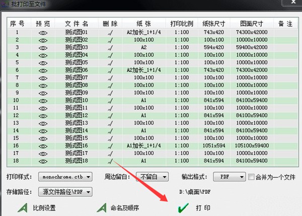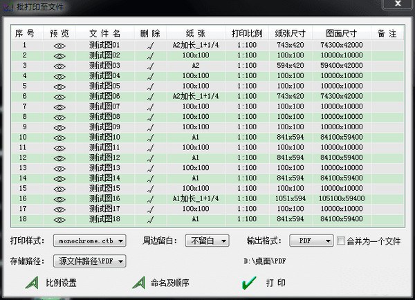 实时调整打印比例(1:1至1:1000)、颜色模式、线宽参数,支持按图框内容自动生成命名规则。
