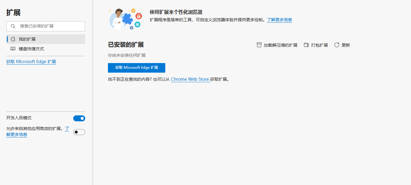 2、在里面打开开发者模式然后在本站下载该插件的安装包;