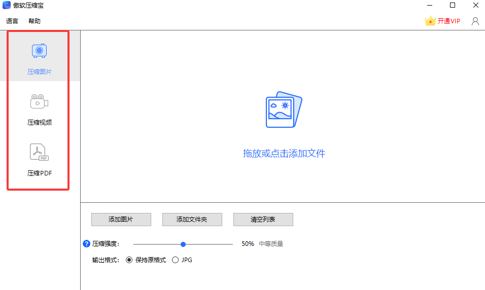 1、进入软件之后点击左边的压缩功能。