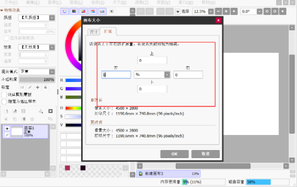 3、随后我们就可以根据需要来对画布进行扩展操作了。