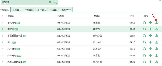 2、接着我们输入歌手或是歌曲名,找到想要收听的歌曲进行下载。
