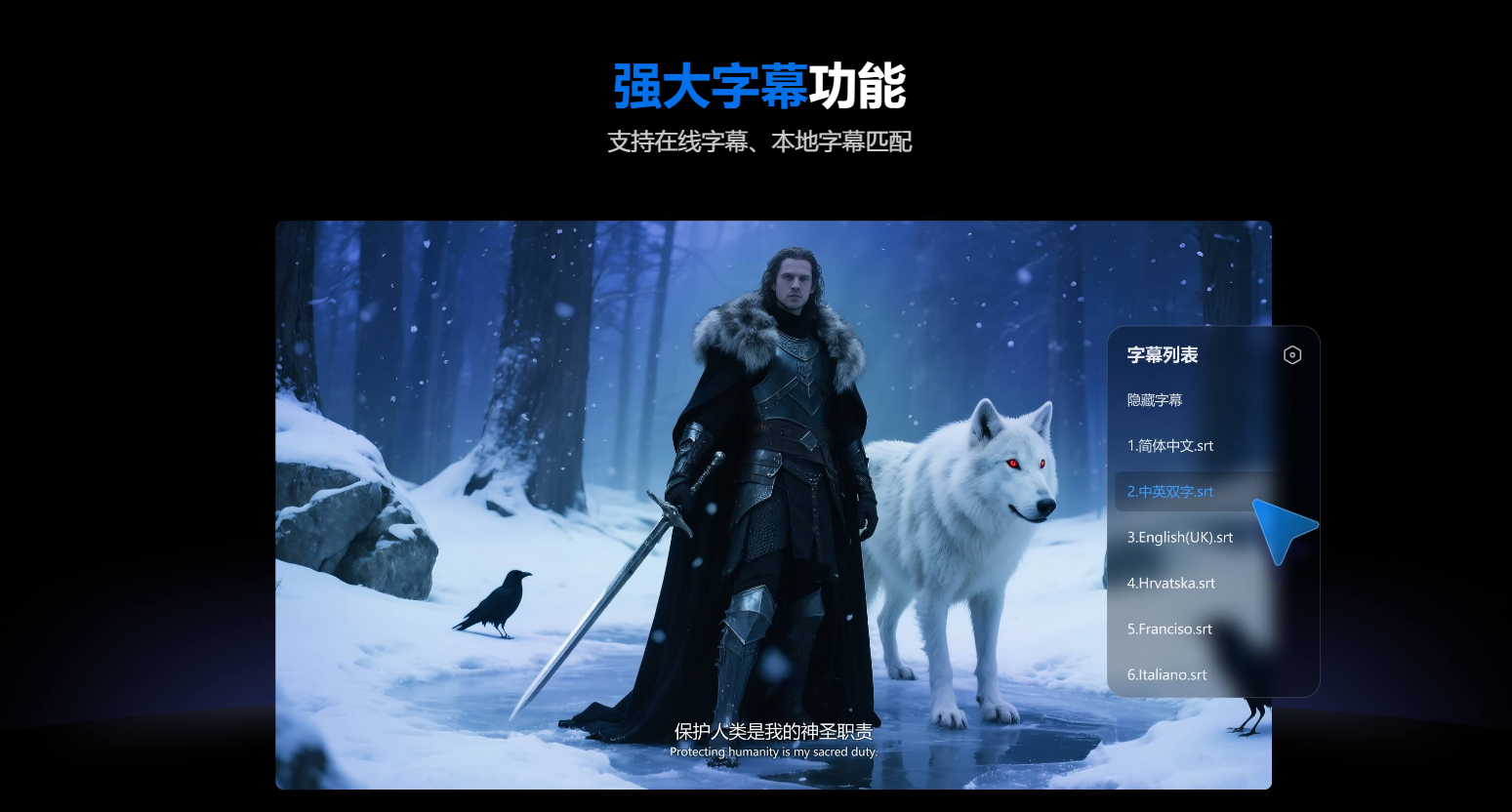 1、精准字幕匹配:当你观看外国电影的时候,它会自行匹配字幕,准确率很高,不会出错的。