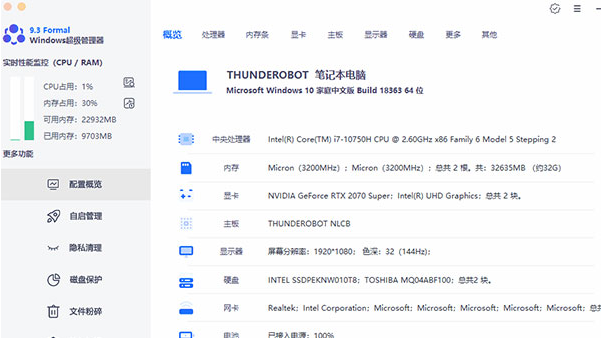 3、硬件检测:第一次打开软件的时候软件就会自动对电脑进行检测了,将硬件信息都显示出来。