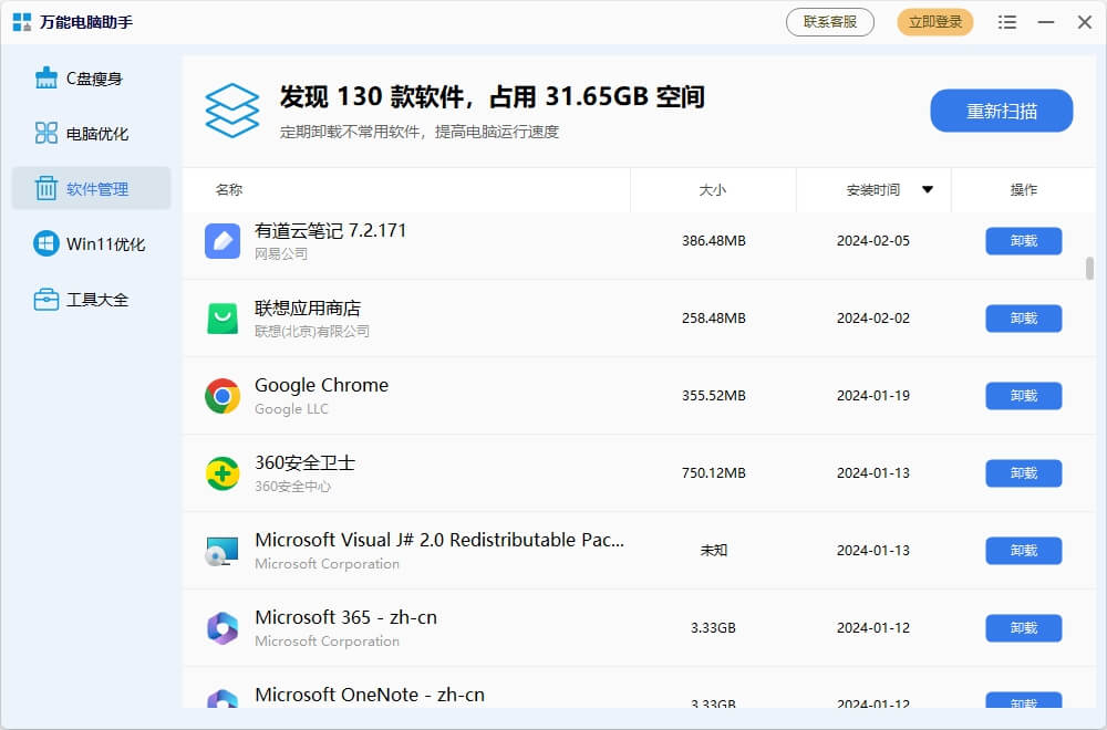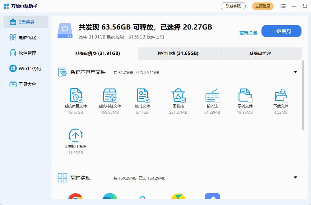 2、软件核心功能包括C盘瘦身、垃圾清理、软件卸载等,适合日常维护而非专业数据恢复。