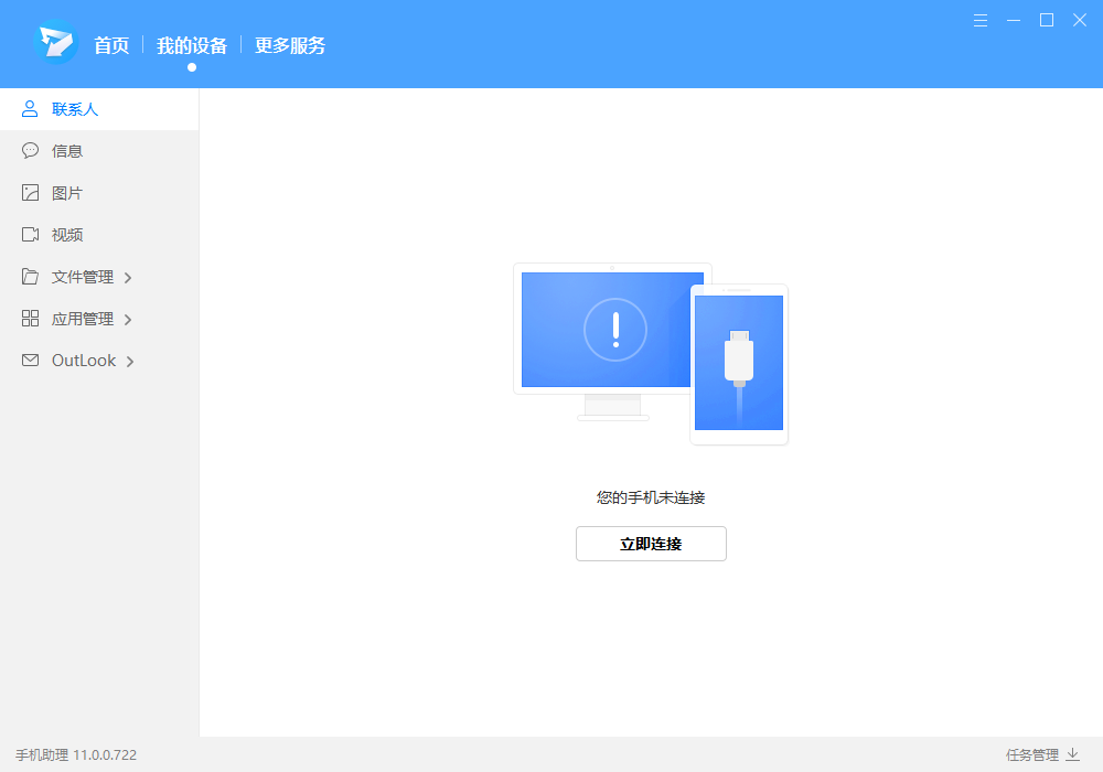 3、使用时,需通过USB数据线或WLAN将手机与电脑连接,并在两端安装应用后,通过验证码配对即可开始数据管理和系统维护操作。
