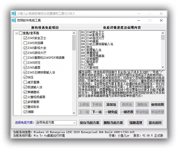 小鱼儿系统维护是一款绿色便携的免费工具软件,它集成了系统个性化设置备份、默认程序关联管理、流氓软件免疫、软件批量安装器等实用功能,并能进行暴力删除和OEM信息注入等操作,适合电脑维修人员和技术爱好者快速优化系统,下面一起来看看吧。