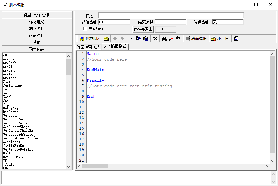 自带代码编辑器,支持代码自动完成,并能输出调试信息,方便用户排查脚本问题。