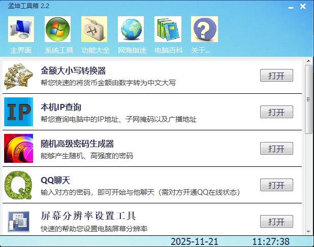 孟坤工具箱是一款高效实用的多功能工具软件。它能快速整理文件、一键转换格式、批量处理任务,支持多场景应用,帮助用户轻松完成日常办公与数据管理,提升效率,减少重复操作。接下来就帮助大家了解孟坤工具箱的功能及使用方法。