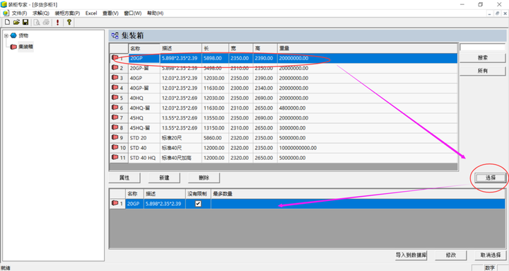 1、输入货物尺寸重量,设置集装箱参数,选择装柜优先级规则。