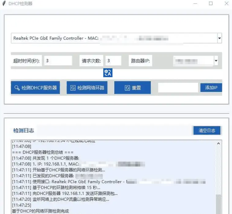 DHCP检测器是一款专门用来检测网络情况的工具,当用户在使用网络的时候有概率会遇见网络拥塞和瘫痪的功能。此时就能使用该软件对电脑进行检测,将异常问题找到出来并修复。此外还能用来检测网络环路,功能十分丰富。