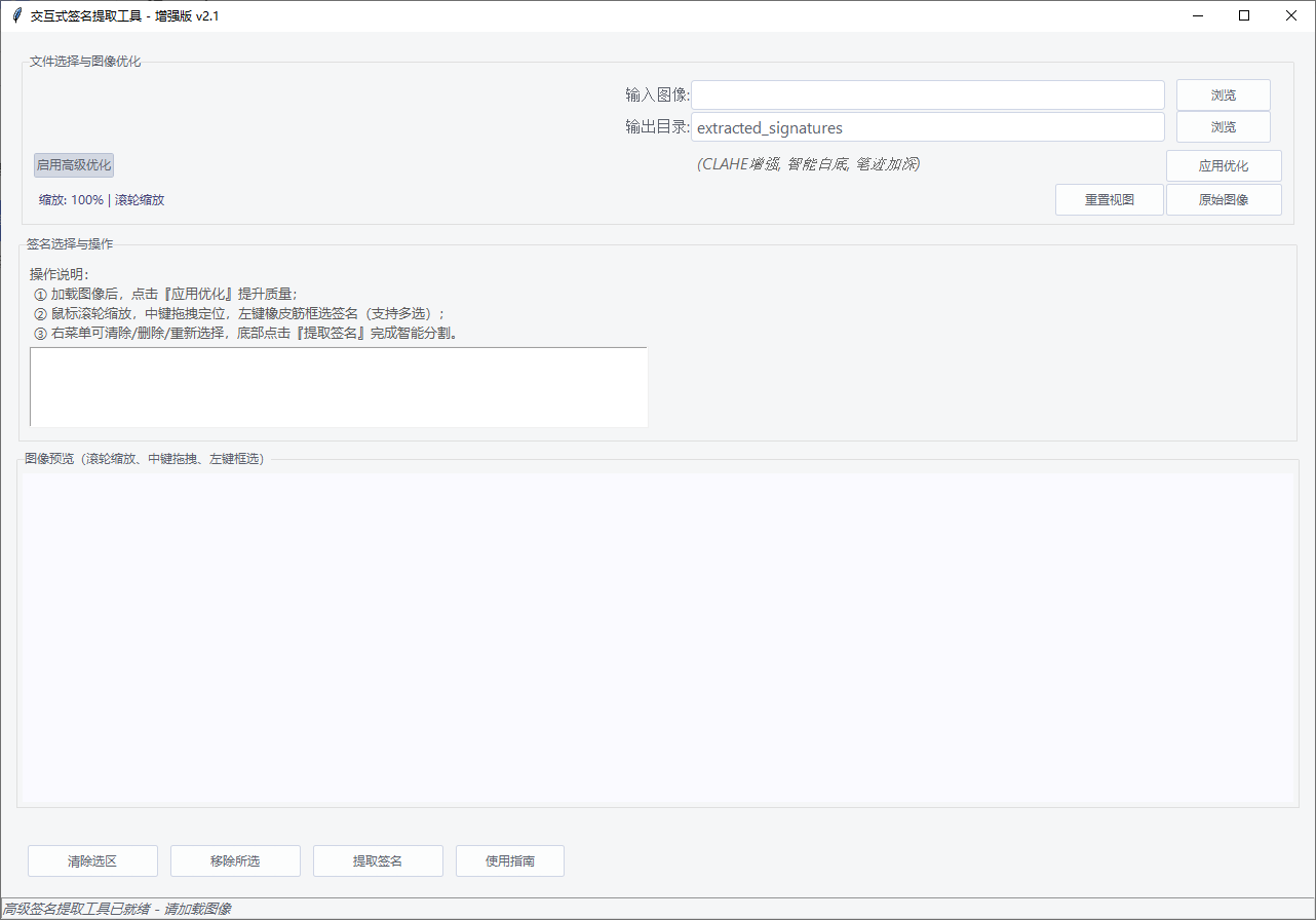 1、一键提取:软件会自动检测当前设置完成的图像并开始提取签名,实时显示进度。