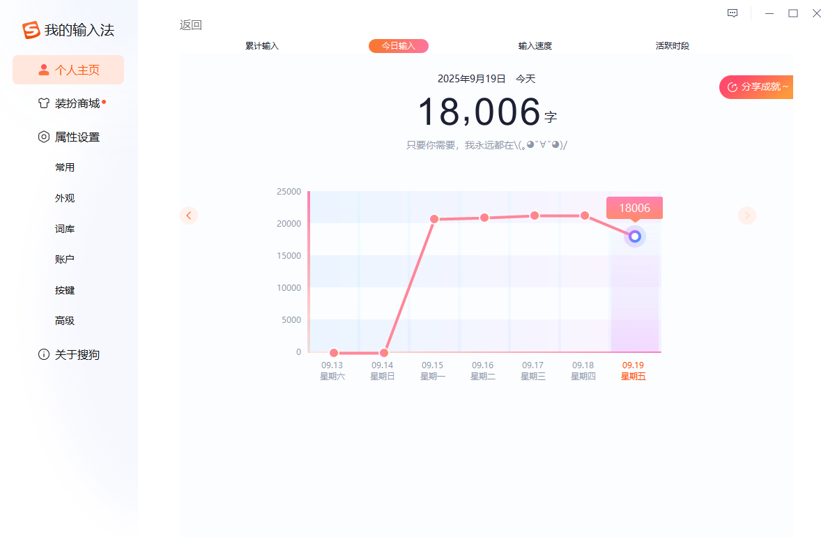 2、在这里可以看到自己每天输入的字数以及速度等。