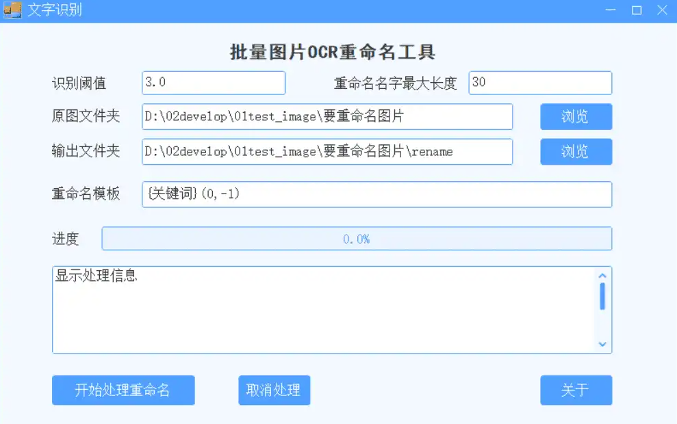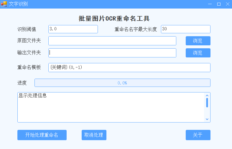 批量图片OCR重命名工具是一款非常实用的图片名修改工具,支持用户选择多张图片一起进行修改。用户能自行设置命名的长度等参数,而且在进行处理的时候会实时显示进度。软件使用方式十分简单,非常适合新手使用。