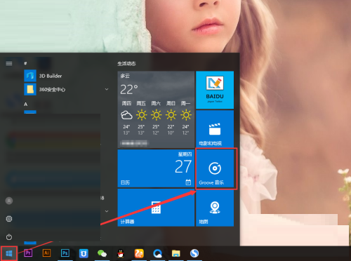 1、点击系统按钮,在菜单页面中找到groove音乐。