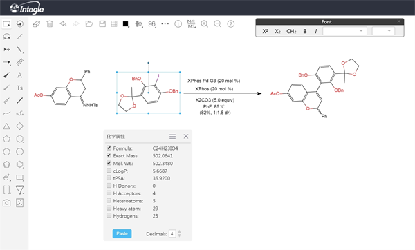 支持绘制有机化合物、生物聚合物等复杂化学结构式和反应式,操作直观便捷。