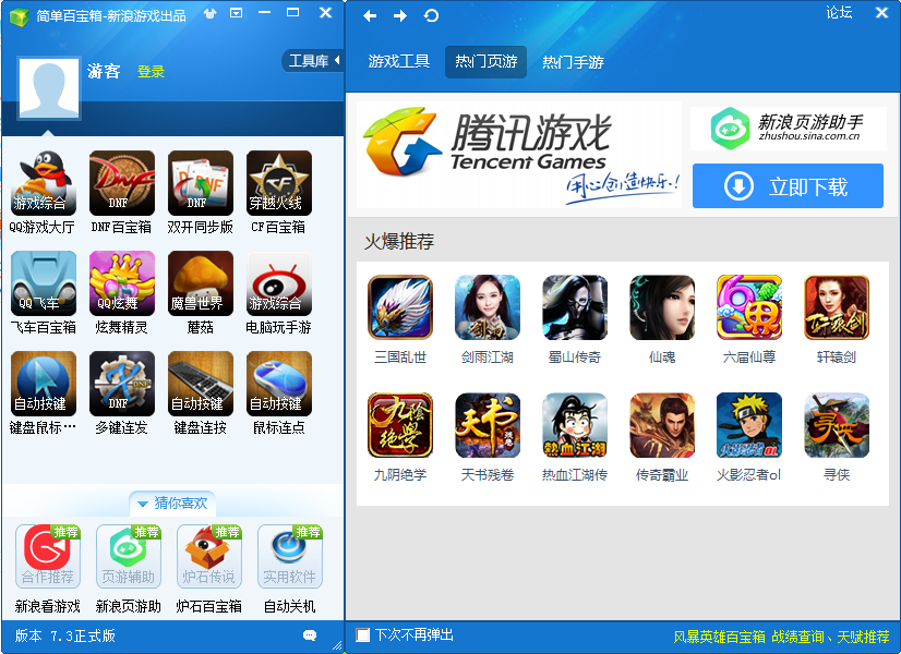 dnf百宝箱时装补丁是一款功能丰富的趣味游戏盒子,这款软件当中所提供的功能能够为各种游戏开启辅助游玩,让玩家们能够沉浸式的利用百宝盒来开始进行游玩,喜欢玩游戏的玩家们可以沉浸式的进行游戏体验。