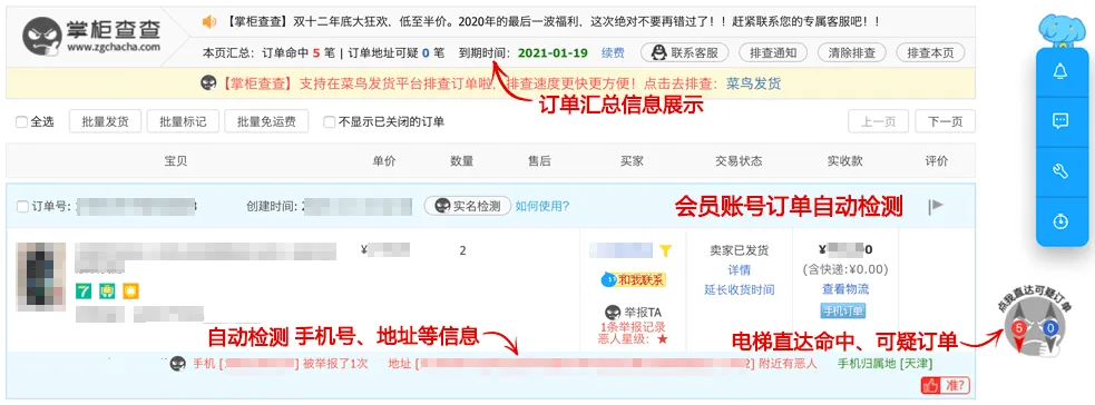 4、批量处理:它会一次性检测大批量订单,大幅提升审单效率,确定没风险后就可以发货了。