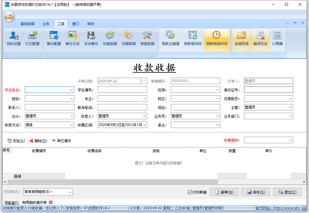 优图学校收据打印是一款专用的学校收据打印软件,可以根据每个学校的特点进行量身打造,满足用户的使用需求,系统操作起来方便快捷,功能完善强大,运行十分稳定,年纪大的老师也可以上手使用。