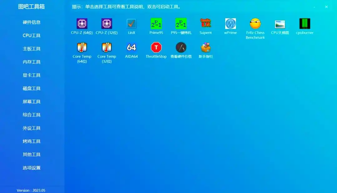 CPUZ、ThrottleStop、Furmark1、Furmark2、Rufus、显卡天梯图、GPUZ、DDU、WizTree、AIDA64、HWiNFO、HWMonitor更新到最新版本。