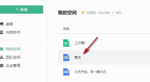 1、打开软件选择【我的空间】点击想要导出的文档;