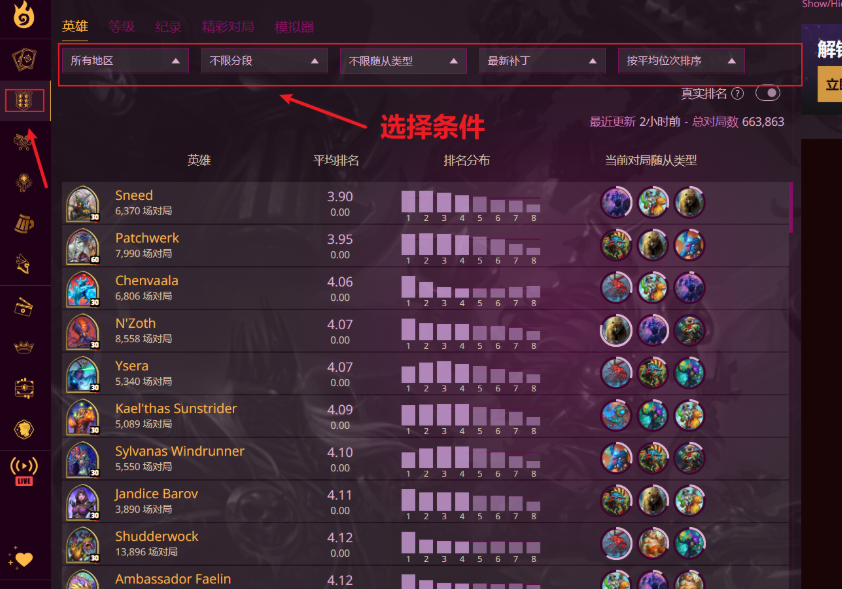 2、选择对应的游戏版本和分段就能看见当前数据详情;